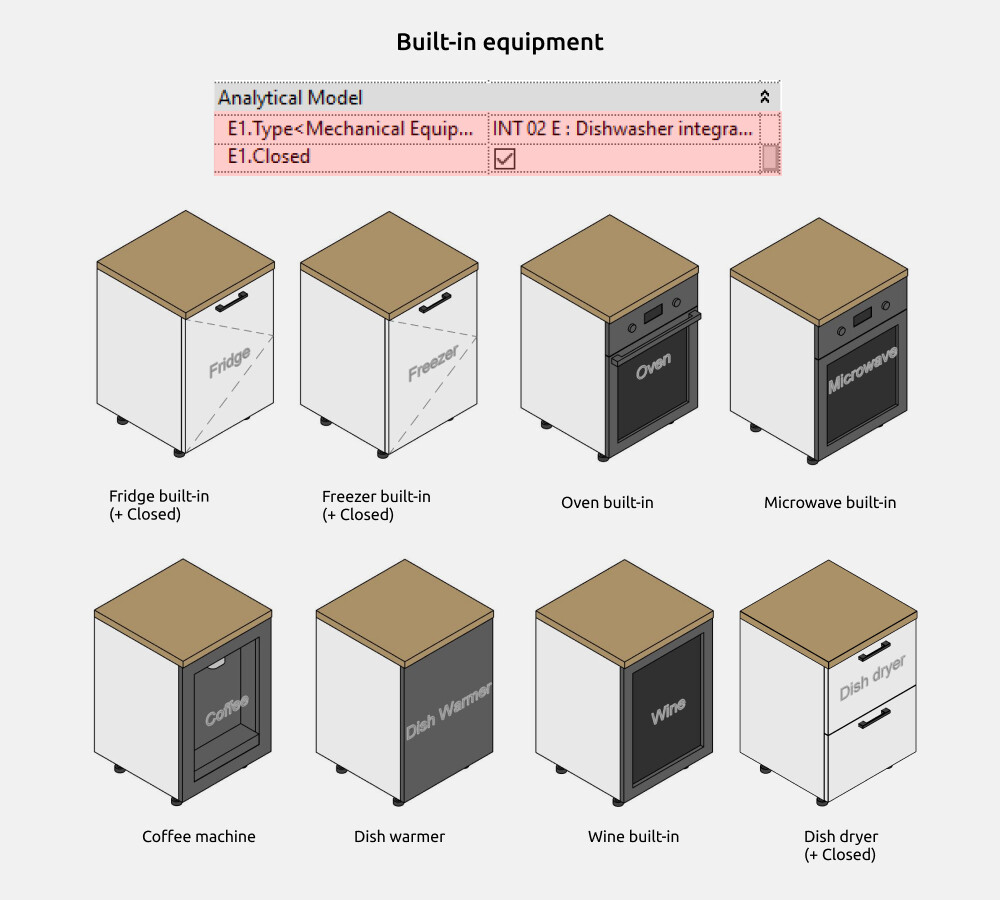 This set of Revit families is made for modeling a kitchen in Autodesk Revit.