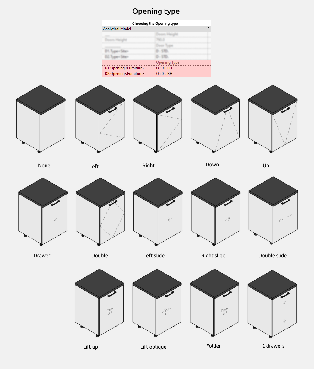 Opening types can be selected in the drop-down list for each unit family. It is: