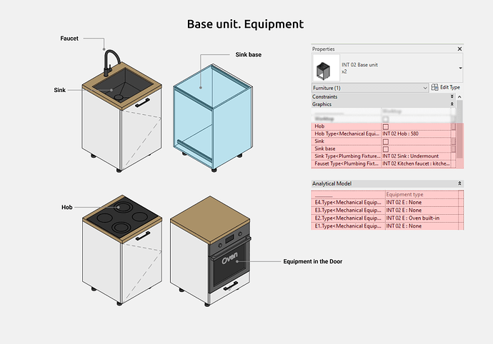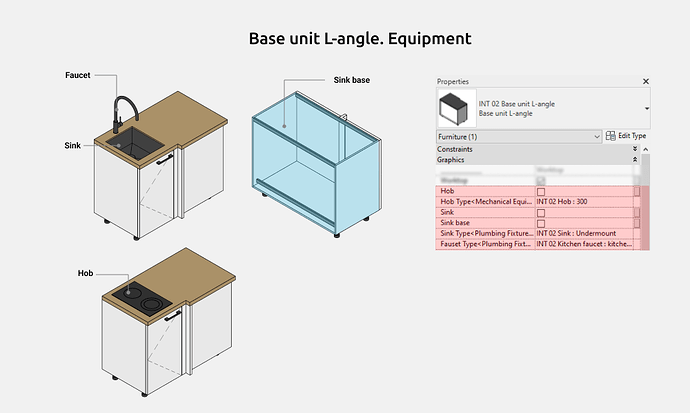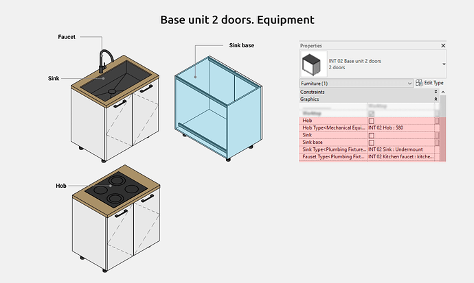 Be sure to choose types with the initial heading INT 02 Sink. Because various other families are loaded into the drop-down lists and do not need to be selected.