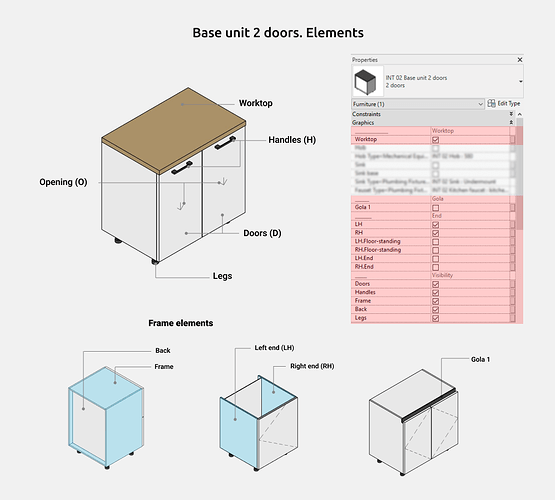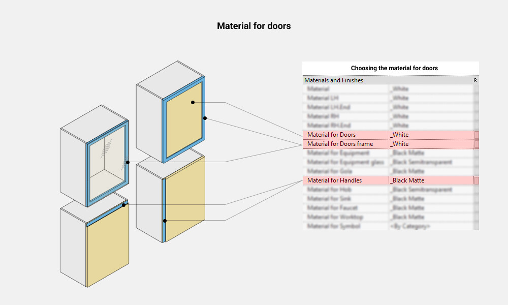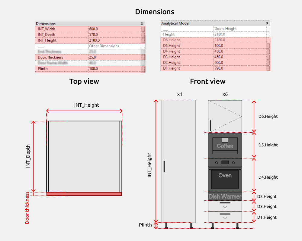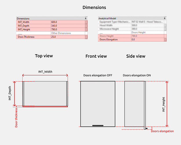 In this family, the height and width of the doors do not need to be placed; everything is calculated automatically based on the overall dimensions of the unit.