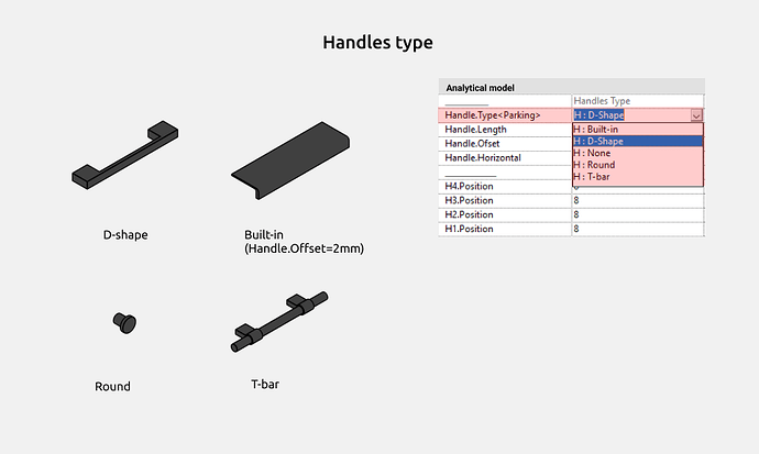 Handles types can be selected in the drop-down list for each unit family. It is:
