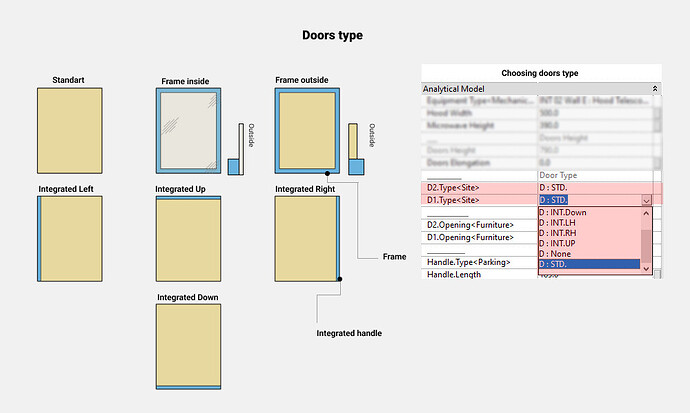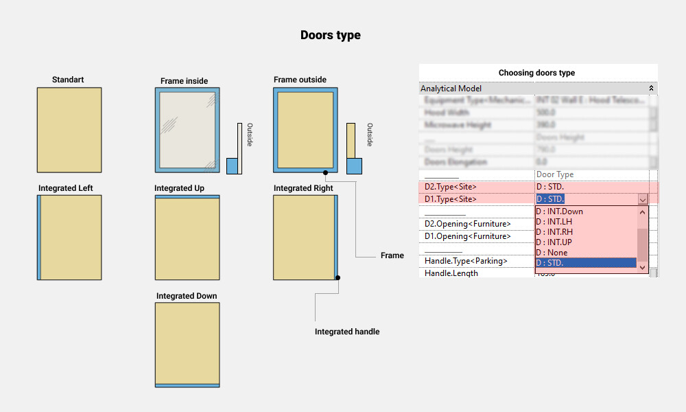Doors types can be selected in the drop-down list for each unit family. It is: