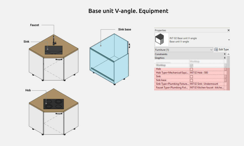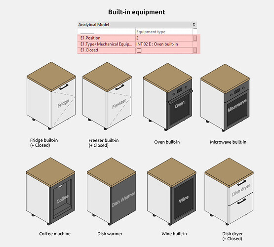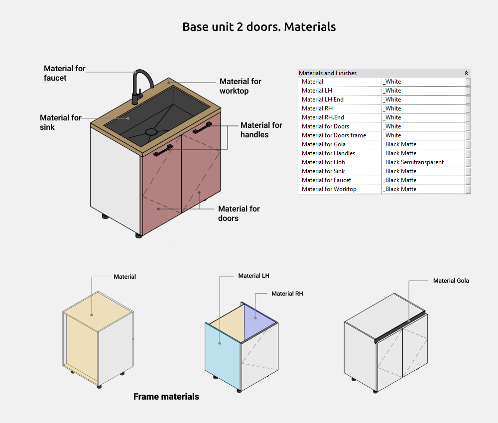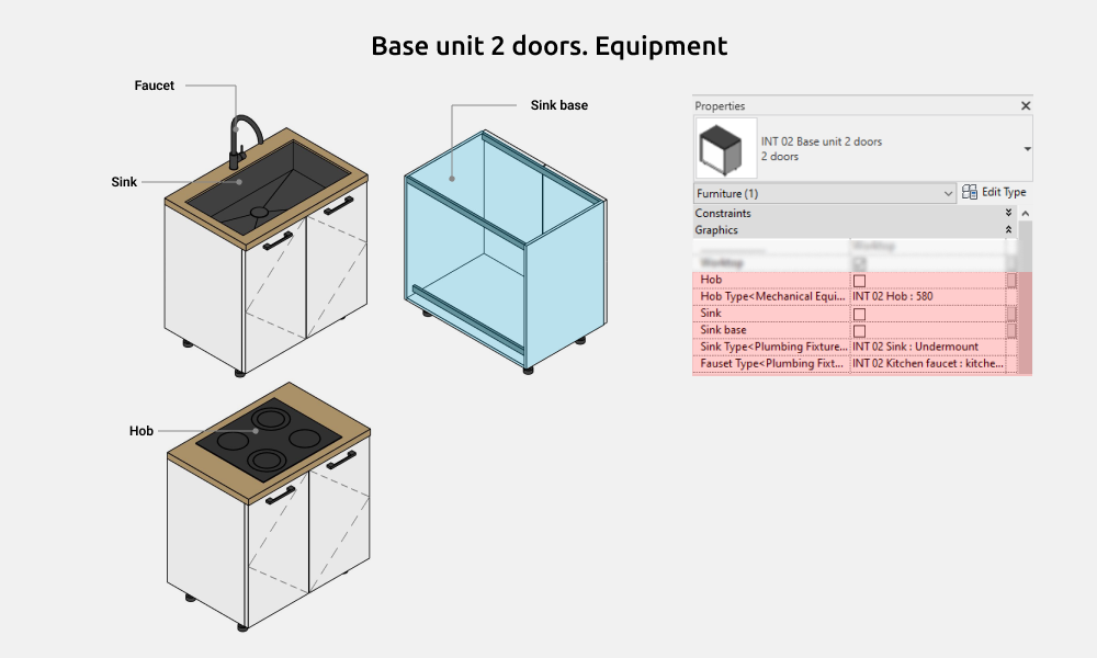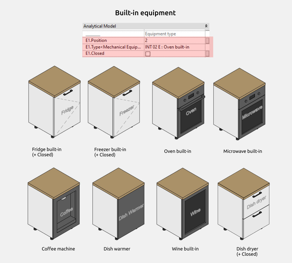 This set of Revit families is made for modeling a kitchen in Autodesk Revit.