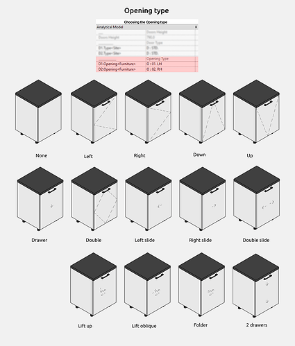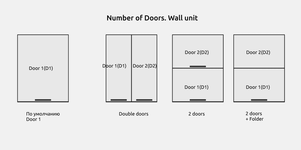 - 2 doors (you can add Folder opening to this parameter and the top handle will disappear)