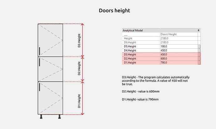 It is better to start building D.Height from the lower, first door. Because D.Height of the last, upper door does not work.