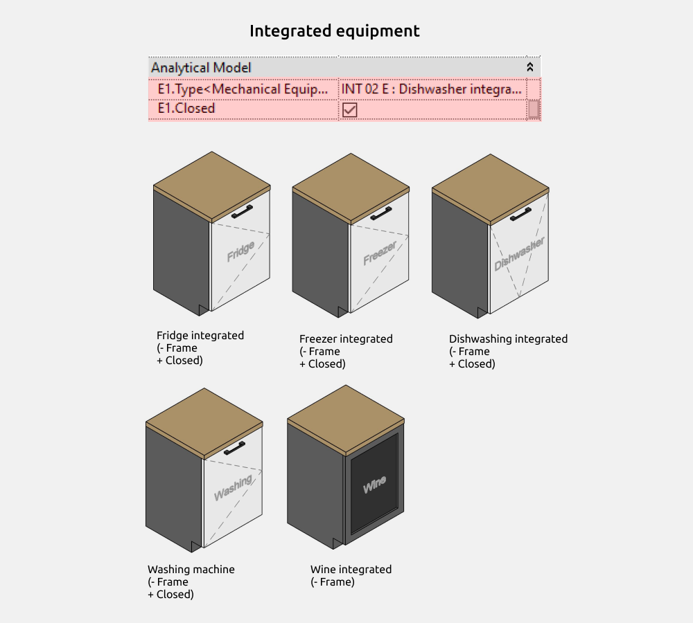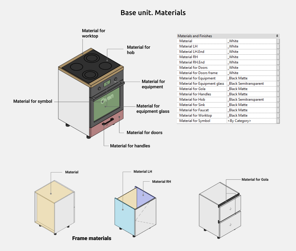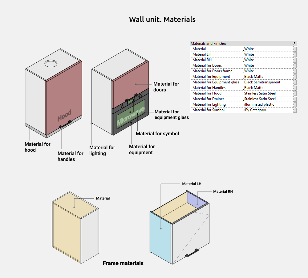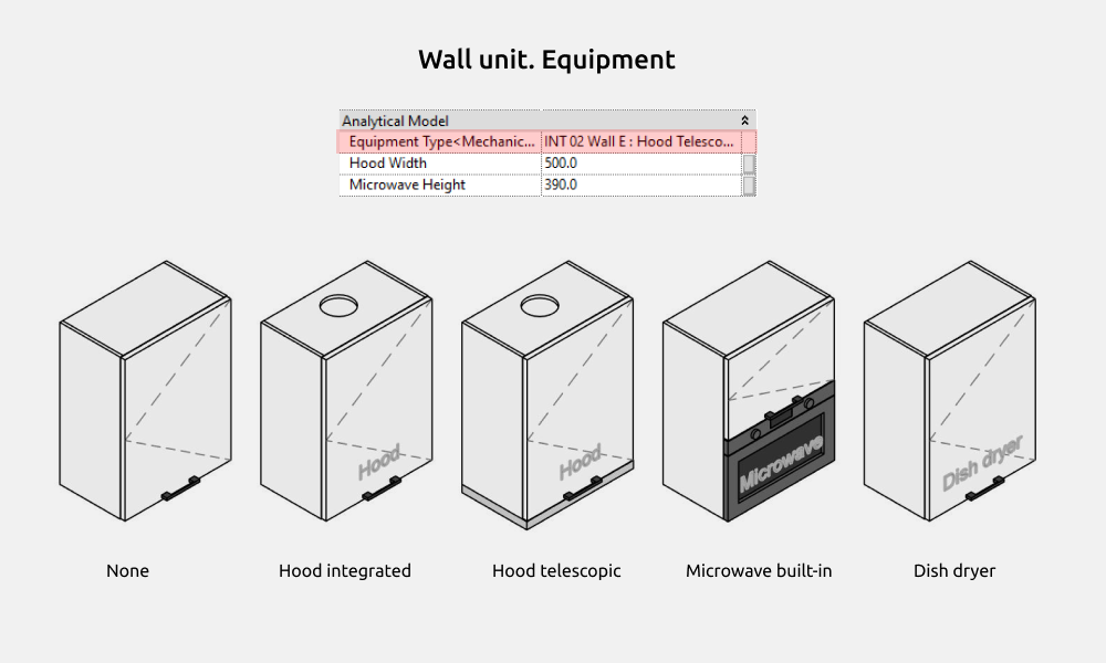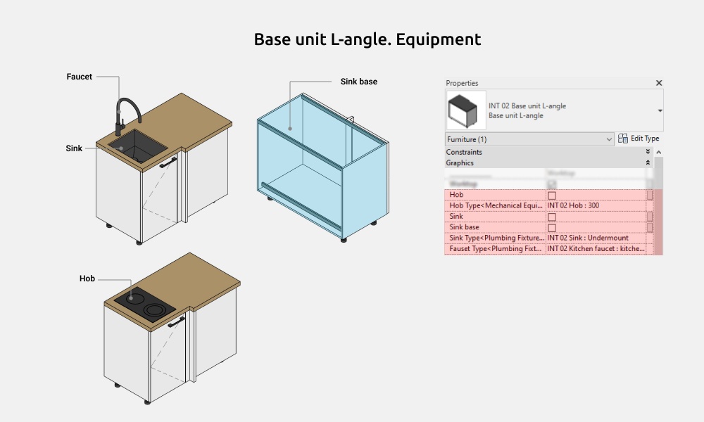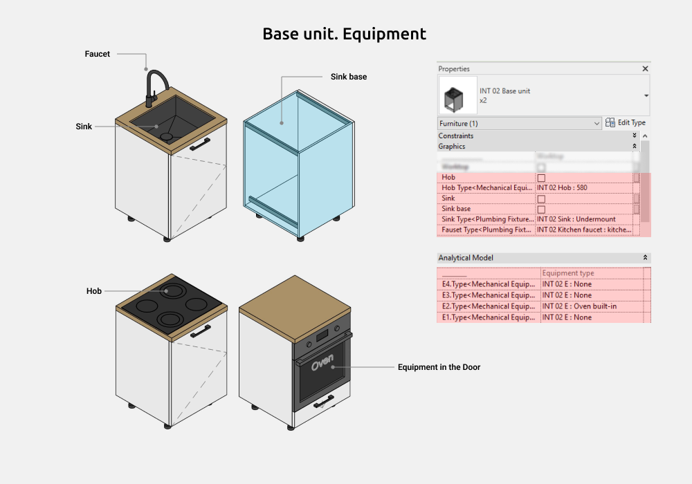 This set of Revit families is made for modeling a kitchen in Autodesk Revit.