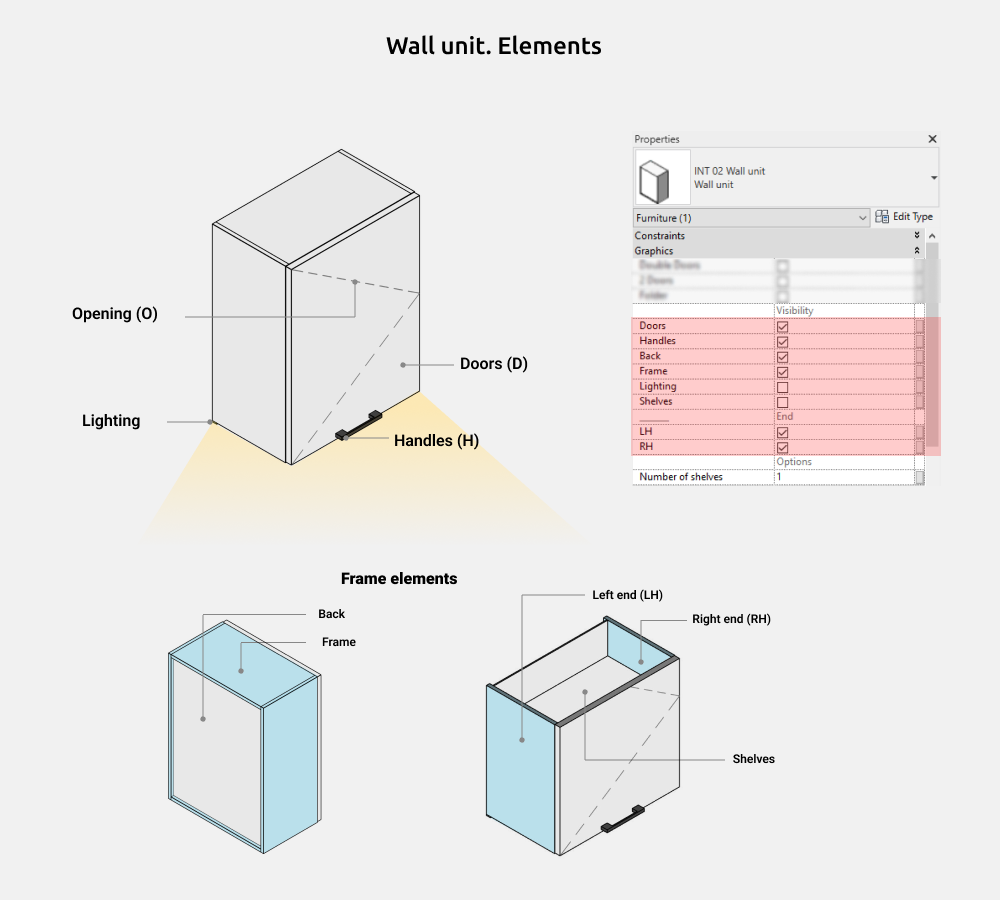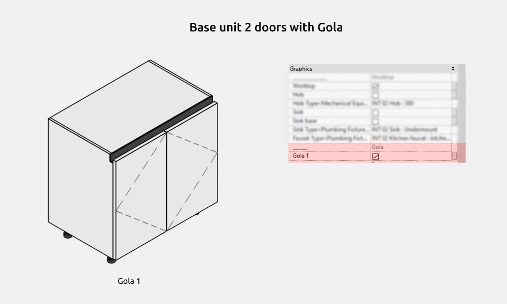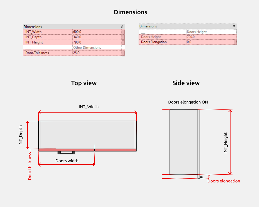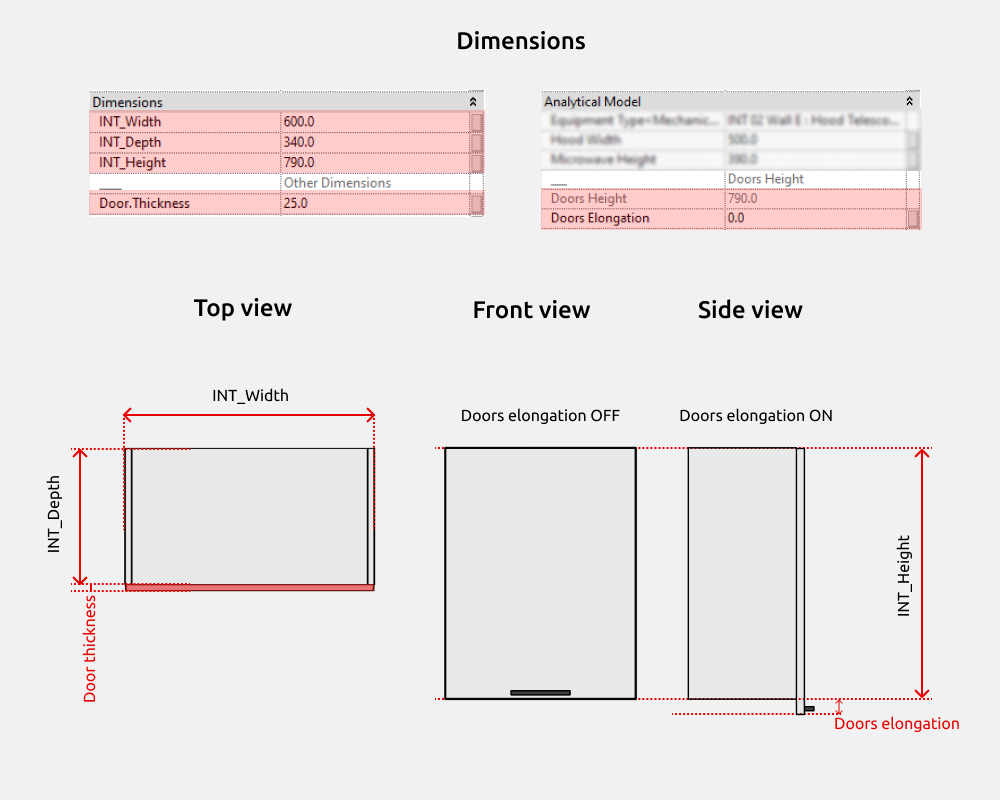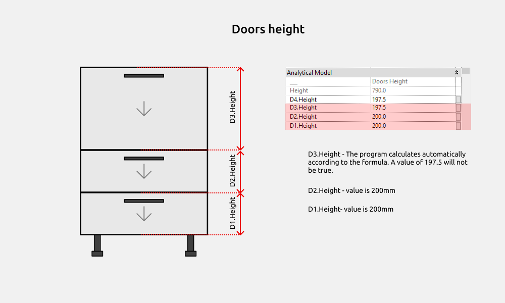 In this family, the height and width of the doors do not need to be placed; everything is calculated automatically based on the overall dimensions of the unit.