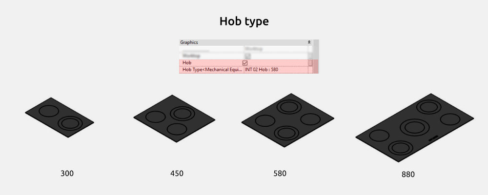 Be sure to choose types with the initial heading INT 02 Hob. Because various other families are loaded into the drop-down lists and do not need to be selected.